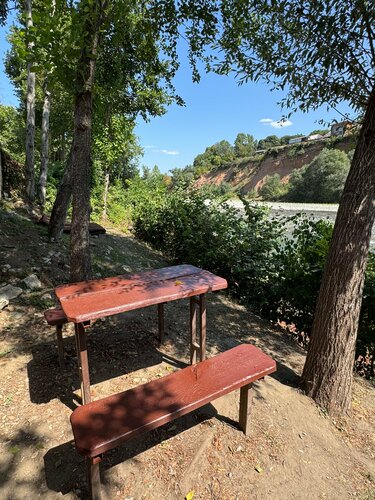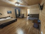 Это просто восторг! база отдыха находится на берегу реки, есть лестница, чтобы спуститься на берег, столик чтобы посидеть и оценить красоту этого места, территория чистая есть прекрасно обустроенная мангальная зона, есть закрытые беседки с обогревателями, где мы прекрасно отдыхали несмотря холодную погоду, также есть бассейн с подогревом , в домике есть посуда, чайник, микроволновка, холодильник, фен, полотенца, халаты, тапочки, в домике очень тепло
