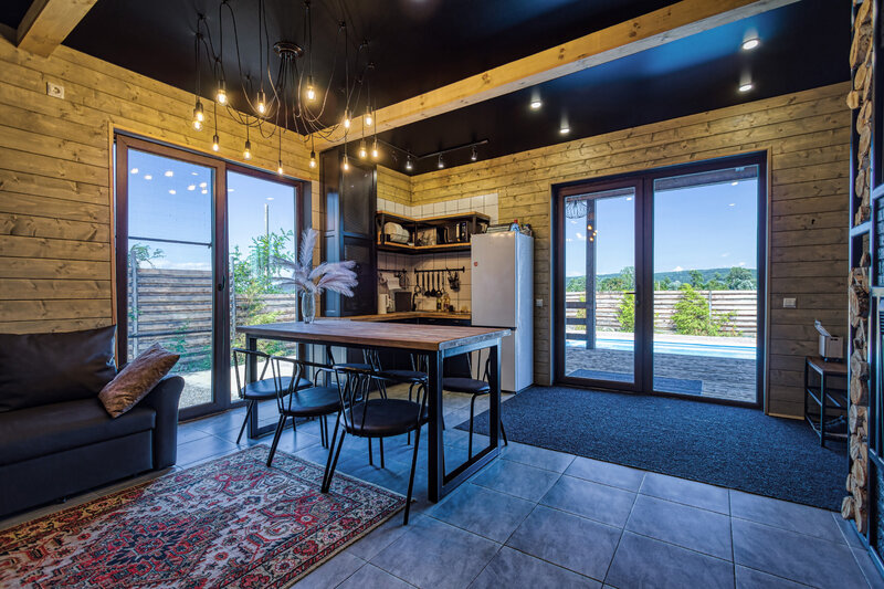 Замечательное место, тихо, вдали от трассы, практически на краю хутора. Немного необычно для городских, первую ночь было страхово, потом привыкли )). В доме 2 спальни в каждой шкаф, диванчик, телевизор, гостиная с двуспальным диваном, обеденный стол, камин электрический с подогревом и треском дров, баня на дровах, два санузла с душем. Колонка музыкалтная,есть и караоке, но мы не пели )) Халаты, тапочки, гели, шампунь, зубные принадлежности в достатке. На кухне электрическая,печь, вся посуда, чашки , бокалы, стаканы, сковородки, кастрюли и т.д. на улице шикарный бассейн вода 32, к вечеру просили хозяев нам топили под 37 градусов- балдели под яркую подсветку. Мангал со всем необходимым, уголь, розжиг приобретали сами. Шикарно провели время, на улице больший стол, где можно прекрасно отдохнуть и наблюдать за детьми в бассейне) мы остались довольны, надеюсь приедем ещё)))