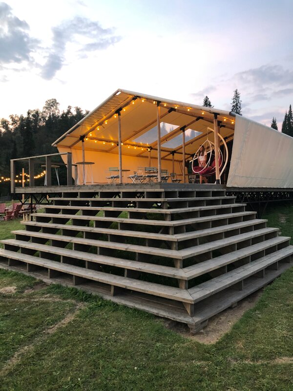 1. Вид и атмосфера: Безумно красивое место, волшебные пейзажи, уютные палатки, стильный интерьер. Вечером гирлянды на террасе создают потрясающую атмосферу.
