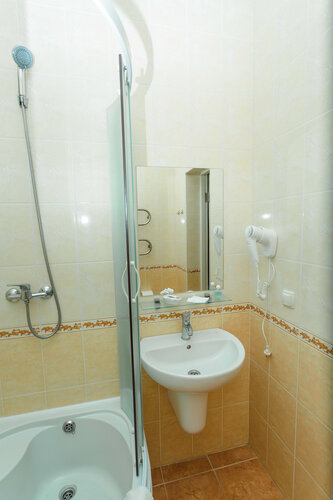 Плюсы: заселили на 40 минут раньше по просьбе, без влияния на время выселения (заселились в 13:00, выехали в 12:00, по плану заселение в 14:00, а выселение в 12:00); администратор проявила себя ненавязчивым, ответственным человеком; взамен балкона хотя бы есть сушилка за окном (5 реек с прищепками); действительно есть телевизор (не пользовались); есть кондиционер, включённый заранее (после жары было приятно войти в комнату прохладную); интернет действительно есть; туалетно-косметическик принадлежности тоже есть; фен есть, не пользовалась; посуда есть, не пользовались; сейф тоже присутствует, в шкафу есть дополнительные подушки и одеяла, приемлемая цена.