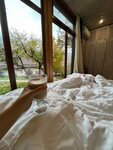 Прекрасный отель среди гор! Дорога от Бахчисарая новая, хорошая, можно быстро добраться. Сами домики очень уютные, созданы с любовью. Есть вся необходимая посуда на кухне, от вилок до салатников, в ванной комнате белоснежные полотенца, одноразовые зубные щетки и наборы из геля для душа и шампуня. Сами комнаты светлые, с прекрасными видами. Очень чисто, удобные матрасы на кроватях. Мангальная зона - отдельный восторг, свой мангал и беседка, никто никому не мешает.