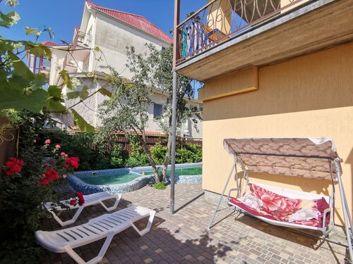 Гостевой дом чистый,ухоженный,бассейн выше всех похвал,сам Дмитрий отвечает за его дезинфекцию. Детям всегда весело во дворе, пока родители за столиком проводят время дети развлекаются на батуте,качелях,спортивной лестнице,играют в пинпонг,аэрохокей! Вообщем,все удовольствия включены! Заняты дети играми на воздухе, счастливы родители! Всё продумано хозяевами. За это респект. Сам Гостевой дом находится в удачном месте,море рядом,дорогу перейти,мимо идёшь...столовая,магазины,кафе,ларёчки...вообщем,супер удачное расположение!