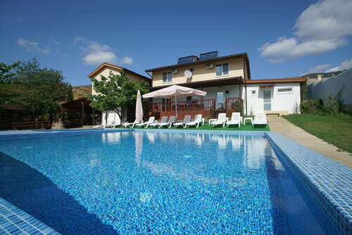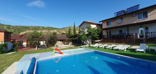 Минусы - дорога к отелю, все таки горы сказываются и есть участки, требующие ремонта. Наличие собственного авто обязательно с последующей заменой тормозных колодок тоже обязательно). Непосредственно перед отелем дорога неасфальтированная. Указателей до отеля по дороге не имеется, равно как и вывески у самого отеля. Отель расположен в насел. пункте, среди жилых застроек. Территория окружена небольшим "забором", выезд через ворота, открытие и закрытие которых осуществляется самими гостями отеля, что не всегда комфортно. Парковка на территории отеля, в сезон не всем хватает мест вдоль забора, некоторые паркуются у бассейна и на газоне. На территории расположены 4 коттеджа, комплекс с номерами и коттедж владельцев отеля, которые проживают здесь семьей, участвуя в "жизни" отеля. Владельцы отеля клиенториентированы, но при условии хорошей финансовой составляющей гостя. Что не понравилось...в коттеджах на 1 этаже очень холодный пол в зоне кухни, ковровое покрытие не предусмотрено, в комнате ощущение сырости, из-за нехватки солнечного света в этой зоне. Огромное кол-во мух на кухне и в ванной комнате, открытой дверь нельзя оставить, сетки не имеется. На 2 этаже шикарный вид из окна. Смущали выползающие из щелей стен 2 этажа большие насекомые, ночью они передвигались по кровати, спали с включенным светильником. Вай-фай в коттеджах работает не везде хорошо. Сотовая связь на терр-ии отеля практически отсутствует. С уборкой проблем не возникало. Питание под заказ, не ресторанная кухня, домашняя, здесь как кому "зайдет". Бассейн на территории отеля имеется, небольшой, подойдет детям, бассейн чистый. Слышимость в отеле хорошая. Если туристы громкоговорящие и с детьми, любящие посидеть на уличной террасе, вы будете в курсе их разговора до мельчайших подробностей с самого раннего утра и до позднего вечера. Но в основной массе туристы стараются соблюдать правила отеля и не шуметь после 22:00. До пляжа без машины самостоятельно не добраться. Пляж, заполнен палатками с "результатами" проживания отдыхающих вокруг и разбросанным в кустах мусором, найти уединенное место в сезон затруднительно. В сухом остатке, приехать на дня 2-3 уместно или же рассмотреть как остановку по дороге, путешествуя по Крыму, но на более длительный срок - нет, дают о себе знать 10 км до моря и отсутствие трансферта до него, а также отсутствие развитой инфраструктуры (продук. магазина с выбором товаров, аптеки, кафе, недоступность медпомощи). Весьма однообразный отдых в пределах границ отеля быстро "приедается".