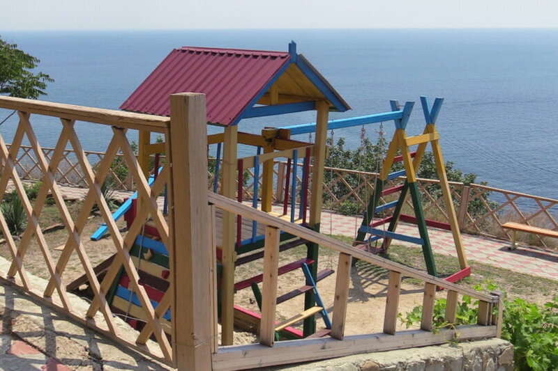 Расположение за поселком на горе над самой чистой и немноголюдной частью пляжа.Галька в основном мелкая, хорошая, по кромке воды покатые небольшие камни.Вход в море хороший, море чистое.