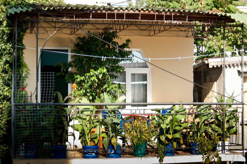 Уютный гостевой дом с номерами как комфорт(удобные кровати с кондиционером , мини кухней ,санузлом ) окна выходят в садовую галерею . До моря идти минут десять если не задерживаться на расположеных по дороге