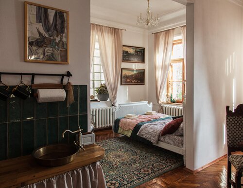 Очень уютные и стильные апартаменты - для любителей эстетики и истории вообще полный восторг! По сути живешь в Ливадийском дворце! В любой момент суток можно просто выходить и гулять в ливадийском парке! Снимала в начале мая номер Гермес- просторный, красивый! Есть все-все необходимое (в том числе красивая посуда, полотенца, бокалы, салфетки, и холодильник красиво размещается в серванте) и восхищение от мебели, деталей интерьера - сплошная эстетика! Отдельно хочу отметить заботу владельцев о гостях - душевное общение, постоянное присутствие на связи по всем вопросам, в том числе рекомендации прекрасного фотографа (которая кстати создала невероятной красоты фотографии!!!) , заготовки перекуса к приезду - вкуснейшие печенья, чай, вкусняшки! С теплотой вспоминаю свое пребывание там и обязательно вернусь! Огромная благодарность Ксении за такой прием и сопровождение! И даже решен был вопрос с моим багажом , который мне нужно было оставить на полдня- семья Ксении просто взяла его к себе в машину! А дети помогали моей фотосессии и держали фонарики со светом! На самом деле это очень большая редкость и большая ценность такое человеческое отношение владельцев к гостям! Искренне от всей души благодарю и обязательно буду возвращаться!