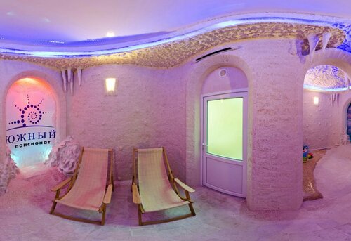 То, что вы видете на фото на сайте, это зелёный лес другого пансионата. На прикрепленном фото видно, где заканчивается забор Южного.