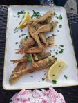 Пиццу принесли холодную , края горелые , колбаса эта , бедная, просто ломтями нарезана и брошена поверх теста, сыр будто из парафина сделанный . На вопрос почему пицца холодная - официантка ответила : « и что? Ну остыла , извините» и ушла по своим делам. Дальше дело за барабулькой ( рыба такая) . Принесли - чувство это эта рыбка познала все ужасы и беды , прежде , чем к повару попала . Опять же , холодная, панировка ужасная , припорошена ошметками зелени с двумя ломтями ( именно так) лимона.