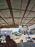 С виду все неплохо - на берегу залива, столики, музыка , лампочки под вечер , вроде даже немного уютно и красиво. Вот за это и можно три звездочки