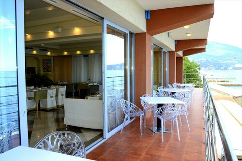 Очень уютный отель. Отдыхали семьёй с 3х летним ребёнком. Первое, что для себя отметили: удобная оплата через сайт. Выбрал что тебе нравится, оплатил, чек с бронью тут же пришел на почту. Рекомендую бронировать именно на сайте, т.к. там оплатить можно только первые сутки, остальное при заезде. Если же звонить, то попадаешь на агригатора и там немного другие условия... ( Быстро прошли регистрацию. Второе: номер класса "комфорт" обрадовал. Уютно, чисто, мебель НЕ СТАРАЯ! Ванна, умывальник и т.д. всё новенькое, опрятное, без следов износа👍 Но ХАЛАТЫ🤦♀️, смешные 😂 Одеваешь и чувствуешь, неприятный осадок. А ещё, ненаигранно вежливый персонал. А вот над детской комнатой нужно поработать. Расписание занятий не соответствует действительности. ИГРУШКИ неопрятные, есть даже очень грязные 🤦♀️ На полках полный бардак, я такого ещё не видела, если честно... Есть игрушки поломанные, без колес и т.д. Одна куча в углу и вторая куча на полке. Огромный "-". Зато, еда превосходная. Очень вкусная, большое разнообразие😋 ШЕФ-ПОВАРУ выражаем огромную БЛАГОДАРНОСТЬ! Но с кофе нужно что-то придумать, не вкусный, кислый. Зато, прекрасный ВИД НА МОРЕ 😍 В ресторане большие панорамные окна, атмосфера прекрасная, играет ненавязчивая приятная музыка. Правда, немного тесновато. Не хватает пространства между столами. Но на общее впечатление это никак не влияет!