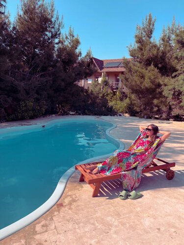 7. Удивительно что при такой территории не смогли сделать зону для готовки на углях. По факту поставили под открытым небом три мангала и когда кто-то из посетителей начинает жарить мясо или рыбу. То весь комплекс погружается в «ароматный» дым, и если не успели убрать белье сохнущее на веревках и перилах (а сушилок для мокрого белья здесь не предусмотрено ни в одном номере) то будете ходить\купаться\вытираться вещами пахнущими дымом.