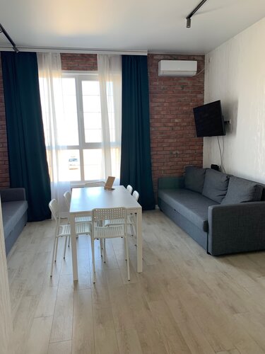 Прекрасное место для семейного отдыха! Останавливались в двухкомнатном номере. Спальных мест до 8 штатно: в спальне двухспальная кровать с хорошим матрасом (для моей больной спины было важно) и двухэтажная детская кровать, в "гостиной" - два дивана-кровати. Есть настольная электроплитка с сенсорной панелью, посуда для еды и готовки, полноценный холодильник, всё необходимое для автономного отдыха есть. Кондиционер в каждой комнате. Фен не настенный в номере.