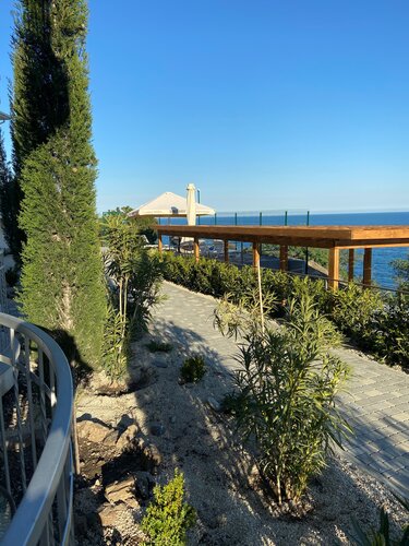2. Пляж. Минус. Его тоже нет. Это како-то дикое место вроде вокруг стоят какие-то гостиницы на пляже, но они все пустые. Спуск в море с пирсов и сразу на глубину, т.к. у берега валуны. С детьми сразу скажу, делать нечего там. Есть шезлонги за небольшую плату. Народу там естественно нет, и естественно нет ни музыки, ни кафе, ни чего... После 19.00 пляж становится пустым и в целом развлекать по вечерам вам придется себя самостоятельно. А ну и идти до него и обратно также как в магазин и кафе) Фрукты купить негде! В магазине только не портящиеся продукты продаются.