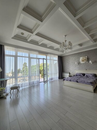 Отдыхали здесь с 1.07.25 по 07.07.25 большой семьей с тремя детьми и бабушкой. Остановились в двухкомнатном номере с двумя санузлами, гардеробной и детской игровой комнатой. Это небольшой и уютный отель на 3 номера. Бронировал номер через авито, и могу уверенно сказать, что в реальности номер намного лучше чем представлен в объявлении. На первом этаже расположен большой гараж на 2 авто и номер где живут хозяева отеля. На 2 этаже наш номер и зона отдыха с мангалом и кухней. Есть также казан, тандыр "Амфора", большой стол для компании и все необходимое для приготовления на углях. На третьем этаже 2 номера и, а на четвертом уровне изюминка этого отеля, это плоская крыша с великолепной зоной отдыха, и прекрасным видом на море. Приятным сюрпризом оказался комплимент в виде бутылочки хорошего шампанского в холодильнике, а также детский игровой уголок с кучей игрушек, где на несколько дней пропали мои трое детей😄 Также во дворе есть детские качели, шведская стенка и еще куча игрушек. К питомцам у хозяев лояльное отношение, у самих во дворе бегает игривый Мальтипу от которого мои дети были в восторге. Везде идеальная чистота, в номере есть абсолютно все для комфортного отдыха. Дорогая техника, хорошая посуда и постельное белье.