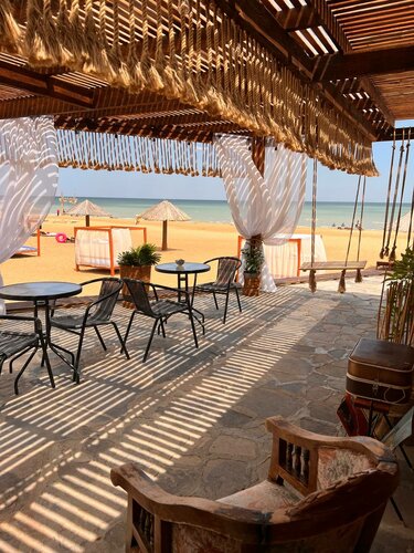 Хорошее место, единственное, что огорчило, что при бронировании было не верное описание номера (должен был быть с видом на море, но вида не было, только соседние домики), но персонал был вежлив и предоставил подходящий номер, не было горячей воды. Пляж чистый, песок и ракушки