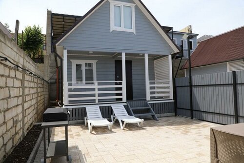 - лежаки и пластиковый стол во дворет