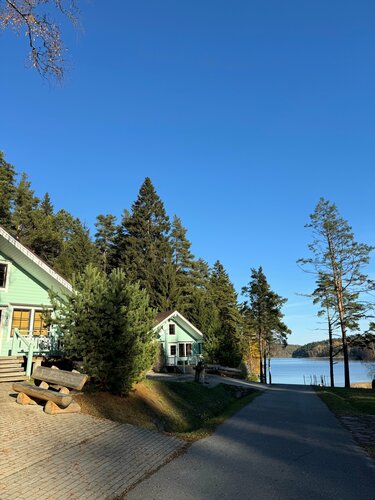 Добрый день всем ) отдыхали семьёй 3 взрослых и любимый хвостик с 19 по 28 сентября в домике #4. Ну что сказать... Сказать, что мы довольны - ничего не сказать ) прекрасный спокойный "деревенский" отдых в уединении. Домики друг к другу близко, но все, кто проживал в третьем домике, нам не мешал совершенно. Как уже многие написали - домики хороши, в них практически всё есть, что нужно. Замечу только, что кроме привычного мяса/рыбы и другого провианта, соль, сахар, приправы и прочее нужно брать с собой (если оно вам надо, конечно же). Топили камин, сауну, жарили мясо - дров на всё время хватило с лихвой, израсходовали только половину. И да, пополнение расходников в виде спичек, бумаги и других мелочей производится очень оперативно. В обязательном порядке упомянем молочную продукцию, которую можно купить у Марии - молоко, сливки, творог, классический сыр - всё это мы попробовали и в дорогу еще с собой дозаказали. Настоятельно рекомендую попробовать!!! Для тех, кто как и мы будет жить в домиках больше двух-трех дней - вполне нормальный магазин продуктов находится в Куркийоки. Там же рыбная ферма, где продаётся прекрасная форель в копченом, соленом и охлаждённом виде. Это тоже опробовано и получило прекрасные оценки. ) Часто приходит черная кошечка, очень ласковая и немножко нахальная. Не обижайте ее, пожалуйста. О хозяевах домиков - Мария и Алексей прекрасные отзывчивые люди, дай им Бог здоровья, удачи и процветания. Очень хотим вернуться сюда еще раз, надеюсь, что сбудется.