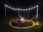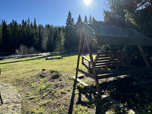Территория просто вау! Свое бережок к реке и тропинка в красивый лес! Мангал, беседка рядом и столик у домика, кострище с деревянными стульчиками.