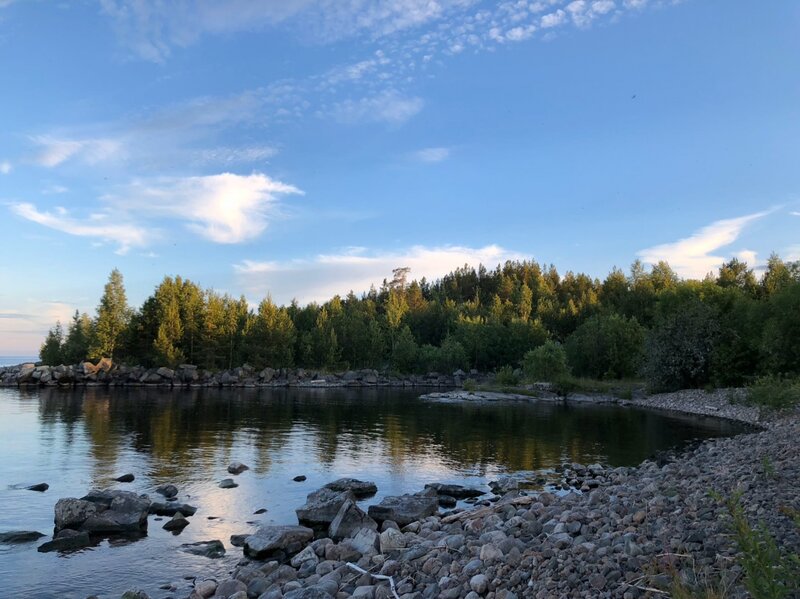 Зато места великолепные : песчаные дюны, сосны, река, Онежское озеро. Через реку полуостров с петроглифами, в лесу за домом грибы и ягоды, от воздуха реально кружится голова.