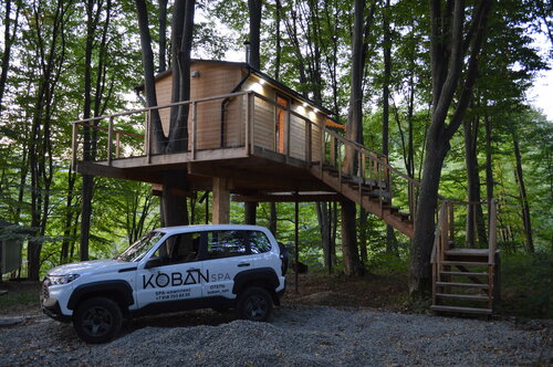 Koban SPA предлагает комфортабельные номера с двуспальной кроватью, кондиционером, отоплением, санузлом, телевизором, Wi-Fi, обеденной зоной и холодильником. В некоторых номерах есть терраса с мангалом и садовой мебелью. На территории есть спа-комплекс с баней, японской баней фурако и холодной купелью, площадка для барбекю, домик с камином и видом на лес. Предоставляются услуги трансфера и экскурсионного бюро, есть парковка и камера хранения для багажа. Возможно размещение с домашними животными за дополнительную плату. Территория для прогулок вечером подсвечивается. Рядом с отелем — лес и несколько турбаз. Недалеко находится водопад Фырыдон, к которому можно дойти пешком.