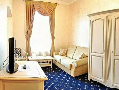 Здесь созданы все условия для комфортного проживания — есть холодильник, телевизор, фен, сейф, отопление, терраса, мини-бар.