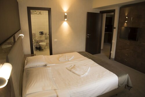Здесь созданы все условия для комфортного проживания — есть кондиционер, холодильник, телевизор, фен, утюг, сейф, отопление, мини-бар. Уборка — по запросу.