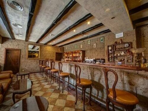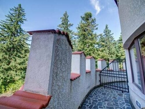 Оказались в этом небольшом отельном комплексе в лесистых горах в 12 км от Брашова не случайно: с проживания в замке начался наш насыщенный летний Dracula tour по Трансильвании. Нам дали улучшенный (по здешним меркам) номер категории de luxe в отдельно стоящем домике. Мебель и сантехника, очевидно, знавали и лучшие времена, но если особо не привередничать и не зацикливаться на мелочах (нам, скажем, не повезло с электронным ключом, упорно не желавшим открывать дверь даже после замены карточки), для проведения пары-тройки суток летом или недели в горнолыжный сезон подходит почти идеально. Вверх по красивой лестнице или на лифте главного замка – просторный ресторан с качественной местной кухней и выходом на террасу. В холле можно посидеть у камина, где к вашим ногам услужливо припадёт «шкурный» медведь. Вниз по ступенькам в «подземелье» – SPA (попасть не задалось) и комната пыток, где большие оригиналы устраивают мальчишники, а детки, входя в раж, готовы укоротить на голову маму, устроившуюся на пыточном ложе для фотосессии. Об этом вам охотно расскажут девушки с ресепшена, любезно разрешив и самим попробовать себя в роли палача или жертвы, и предложив в шутку сделать средневековый «маникюр». При этом хорошо бы иметь не только железные нервы и устойчивую психику, но и крепкое здоровье, так как в случае проблем врач по мед. страховке (в нашем случае – по звонку в страховую компанию) сюда не добирается, во всяком случае летним вечером. В итоге русскоязычная Людмила, работающая и на стойке регистрации, и в спа-центре, превращается в колдунью (и в этой роли она великолепна!) и, присев на корточки, пытается лечить опухшую конечность согревающими пассами по одной ей ведомой японской методике. За что целительнице огромное спасибо! И пусть болезненная отечность голени не спала, но такое внимание было очень приятно и трогательно.