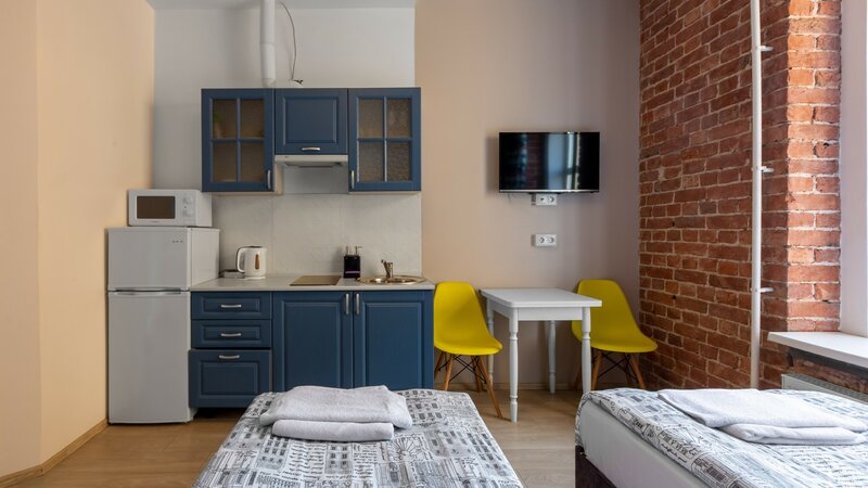 Считаю, что этот номер просто не может стоить 5-6 тысяч рублей за ночь! Точно раза в 1,5-2 дешевле должно быть, судя по тем вариантам, что я видел за эту же стоимость. Апартаменты очень маленькие (скорее всего, меньше, чем заявлено), довольно неудобно обставлены, не функциональны. При этом, за такую цену в номере нет кондиционера (без которого невозможно там находиться, если на улице выше 20 градусов), стиральная машинка и утюг общие на весь отель, уборка в номере только за доп.плату, Wi-Fi постоянно лагал, душ подтекал, в душевой кабине плесень.
