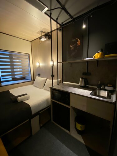 В номере есть холодильник, чайник, небольшая кухонная зона, удобная кровать.