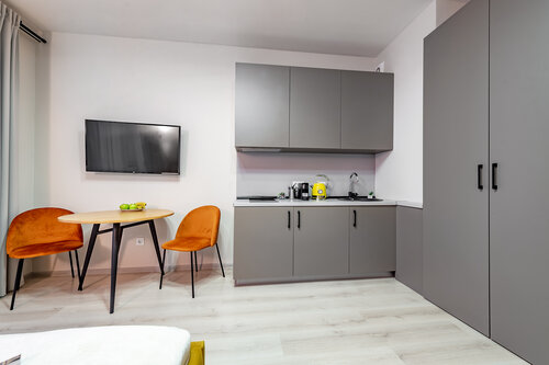 Останавливались тут с девушкой на майские праздники. Понравилось абсолютно всё. В студии есть всё необходимое: телевизор, утюг, гладильная доска, стиральная машина, фен, чайник, плита, микроволновка, вся посуда. Есть даже кофемашина! Отдельно хотелось бы подчеркнуть, что всё новое, такое ощущение, что сдаётся совсем недавно. В ванной нет даже намёка на сырость и неприятные запахи. Вода в душевой регулируется легко и быстро, не приходилось ждать по 5 минут пока пойдёт горячая, как это часто бывает в других местах. Есть хороших размеров балкон со столиком и стульями - тоже плюс в хорошую погоду. Есть где оставить машину, даже получалось так, что видно из окна. Все магазины, аптека итд имеются. По размеру студия не самая большая, но достаточная, ощущения тесноты ни разу не было. Бесконтактное заселение - тоже большой плюс. Мы были на машине, до центра города без пробок добирались за 20 минут. Подчеркну, если без пробок. В метро не спускались, но, судя по карте, до метро от дома минут 15 пешком. Питер посещаем раз в год последние 10 лет, и теперь это приоритетное место для следующего раза.
