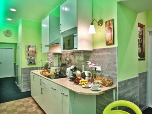 «Ария» предлагает номера с мини-кухней, холодильником, микроволновой печью и стиральной машиной. В номерах и на всей территории есть доступ в интернет. Есть камера хранения багажа, общая кухня и детская площадка. Предоставляются услуги клининга и прачечной. Возможна ускоренная регистрация заезда и выезда, а также услуга «звонок-будильник». В номерах есть всё необходимое: душ, фен, белоснежное бельё, полотенца. Находится в тихом месте, недалеко от метро и остановок наземного транспорта.