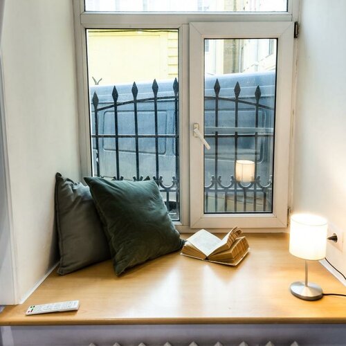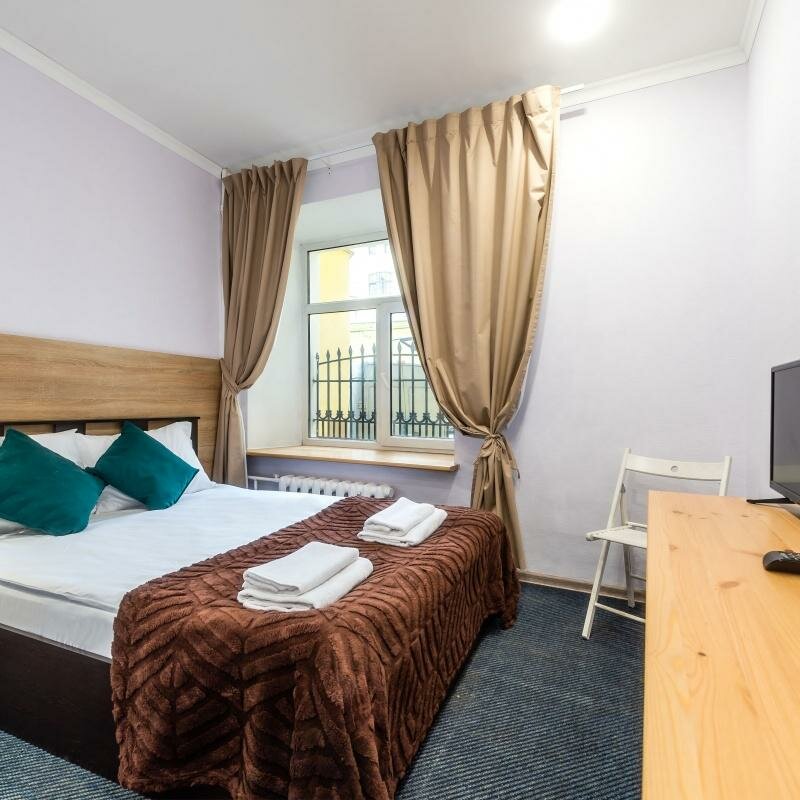 Отвратительно всё, кроме расположения. Началось с заезда: дозвониться до "отеля" я не могла не в Екатеринбурге, не по приезду в Петербург. Когда всё таки дозвонилась, то это мне сказали, что не могут до меня дозвонится и я бросаю трубку. Номер грязный: следы от комаров на стенах, тинета на потолке рядом трубой, "портьеры" серые в пятнах, кухня сделана для того, чтобы вы в ней не ели (плита, микроволновка), все в копоти и жире. Окна в номере выходили во двор, в котором постоянно горел свет, а следовательно ночью в номере не было темноты. Шторы не Блэк -аут , а жалюзи нет и ширина штор меньше ширины окна. Пока светло (утром) шторы не открыть, иначе будете на всеобщем обозрении. Стола для работы в номере нет, стола нет вообще