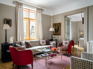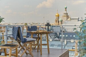 Обеспечена безопасность: есть охрана, видеонаблюдение, камера хранения, сейфы, датчики дыма. Рядом находятся метро, магазины, общепит и достопримечательности: Государственный Эрмитаж, Дворцовая площадь, Исаакиевский собор, Московский железнодорожный вокзал, Невский проспект, торгово-развлекательный центр «Галерея».