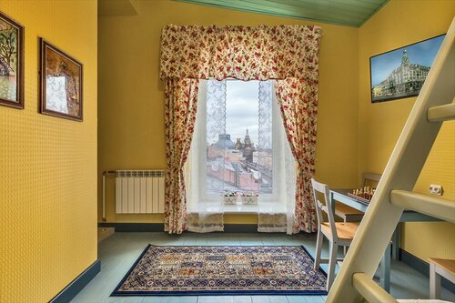 Не могли понять где вход, табличка есть, а решетчатая кованая черная дверь-решётка закрыта и на ней штук 15 домофонов и кнопочных кодовых замков, ни один не отвечает. Девушки из конт.телефона фирмы объяснить не могли куда же нам зайти. В итоге мы сильно отошли от этого отеля. Пришлось возвращаться. Оказалось, что дверь пластиковая справа от этой черной кованой решетки - это и есть нужный вход! На неё никогда не подумаешь, что это входная дверь в парадную. Вы что не можете указатель-стикер на дверь прилепить или на вывеске вашей хоть какую-то стрелку сделать в указании на верную дверь, чтоб туристам было понятно?!! Ещё: вы уж определитесь со своим названием толи вы отель Друзья, толи вы Дом книги, толи вы гостевые комнаты у дома книги...Сюр какой-то!!! Кнопка домофона под буквами "ДК" - это типа их домофон, жать надо было на неё, чтоб с ресепшена открыли, но кто-то выходил и мы прошли так. Почему ДК😳, если название отеля Друзья. Как турист должен догадаться, что ДК - это нужная кнопка, если название в интернете везде Друзья🤬?! Что за маразм? В общем, сразу испорчено было настроение. Издевательство полное над туристами, которые с дороги уставшие! В остальном что: 5 этаж пешком, малые крохотные комнаты,ДЫШАТЬ НЕЧЕМ - воздуха в номерах нет. Хоть номер с окном, но открыть его нельзя было, задыхались как рыбы на берегу. Постельное белоснежное, хорошего качества. Туалеты общие на этажах, не очень это удобно, под кроватями мусор и грязные старые влажные салфетки от предыдущих постояльцев, душ на 1 этаже общий (несколько кабин, в них чисто, слава Богу). Берите шлепки и свой гель для душа. Интерьер интересный (особо деткам), но уставший уже, надо обновлять и пошарпанного карлосона и древнее пианино наверху, которое должно быть компьютерным местом для выхода в интернет, но там ничего не работает и непонятно для чего лежащие клавиатуры грязные и сальные, также номера поновлять надо давно. Горничная была очень вежливая, но на ресепшене девушки уставшие от потока людей особо не рады были нашему появлению, снова нам неприятно стало! Как-будто мы бесплатно и нежданно-негаданно свалились им на голову! Пробурчали сонно что-то, ни банального добро пожаловать, ни доброжелательности, ни улыбки, ничего! То есть сервис ну вообще никакой! Расположение рядом со Спасом на Крови - это единственное, что порадовало. В след раз выберем что-то другое. Выбор огромный в городе.