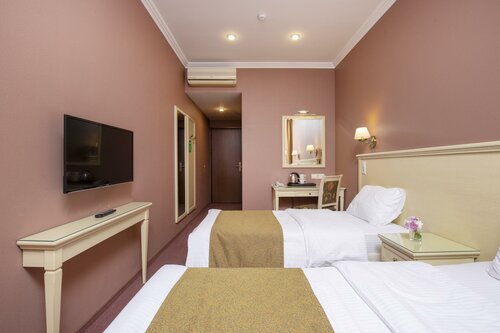 Расположение удачное , самый центр , тихий дворик , рядом кафе , куда ходили на завтраки . Сам номер чистый , каждый день замена полотенец , уборка , добавляли бумагу и душ принадлежности , единственное не было набора щетки и пасты , но это не проблема приобрести или взять с собой . - был один , прохладно в номере , но батарея была выкручена не до конца , мы поставили на максимум и все быстро нагрелось .