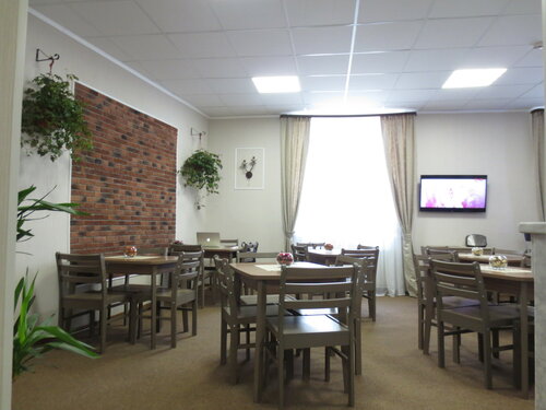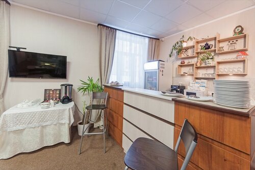 Рядом с моим номером была кухня, совмещенная со столовой. Там можно положить свою еду в холодильник, взять посуду, разогреть еду в микроволновках. Стоит термопот с кипятком, в любое время суток можно выпить чаю и кофе, посидеть за столом и поесть. В отеле предлагают заранее заказать недорогой завтрак, я не пользовалась, ходила есть в пекарню и раменную поблизости, там вкусно.