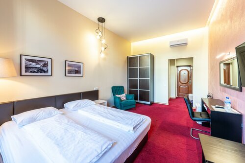 В целом номер был уютный очень. Все чисто, просторно. Шумоизоляция неплохая. Не хватало стиральной машинки, чайника и микроволновки, хотя бы) Кондиционер спасал в жару. Прекрасные плотные шторы, которые помогут поспать подольше, не страдая от раннего солнечного света. Окна с неплохой шумоизоляцией. Удобная двуспальная кровать. Шкаф, тумбы, зеркало, все, что поможет разложить вам ваши вещи, там есть. Есть маленький холодильник в номере. Также был фен, у него насадка слабо прикручена была, но это не страшно. Около номеров стояла гладильная доска и утюг, мы их брали в номер, гладили, из утюга потом выливали оставшуюся воду и аккуратно все ставили на свои места. К сожалению, так делали не все постояльцы. Порой, брав утюг после них, вода лилась на пол и вещи. Но, это не страшно.