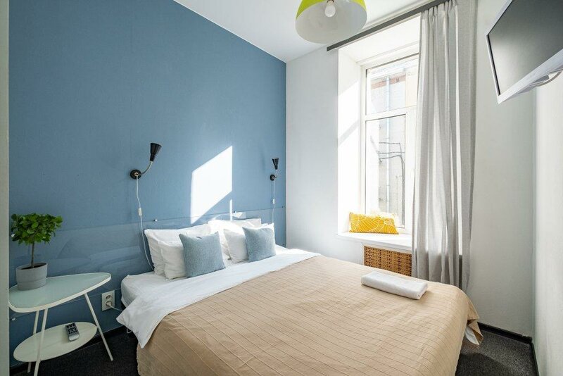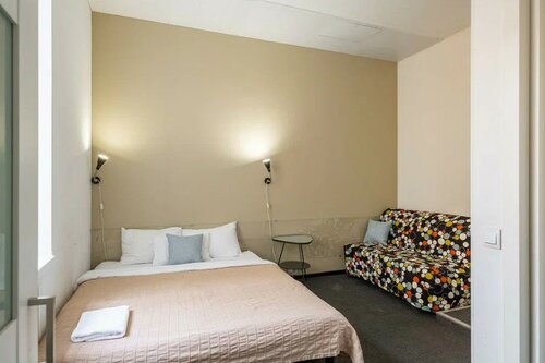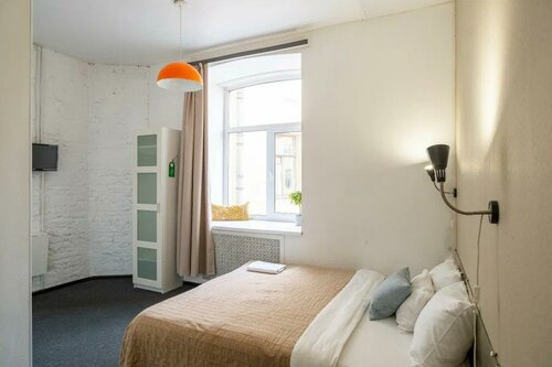 Очень удобное расположение, всё рядом. Проживали в 3х местном номере, окна выходили во двор, это огромный плюс, тихо, спокойно. Висят шторы блэк аут. Имеется антимоскитная сетка, но комары всё равно проникали в номер, но оперативно нам предложили фумигатор розеточный. В номере несколько душновато, потому что сейчас в Питере +27, но есть вентилятор. Также имеется маленький холодильник в номере, на общей кухне тоже есть.