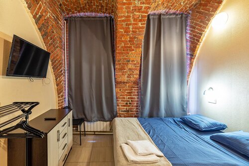Комната №2 для одного человека 2,2 х 3,5 м. Двое не поместятся, но на кровати поместятся, если молодёжь. Санузел очень тесный, сидишь на белом друге боком и раковина в плечо упирается, в душ бочком, между раковиной и косяком двери. Люди с излишним весом тут не поместятся. Вход с улицы бомжатный и воняющий плесенью. Воняет кошками под окнами. Их кормят старушки и сердобольные жители, живущие на втором этаже и выше, а кошки писяют и какают под окнами первого этажа. При входе в прихожую гостиницы шарахает влажностью, там всё время стирают, надеюсь, что для гостиницы. Свет в номере тусклый. На стенах шурупы, как тараканы. Шторы плотные хорошие и свет не пропускают. Снаружи подоконник по пупок, а там стоят машинки красивые, машины пердят в окно, когда заводятся. Комнату не убирают и мусор не выносят каждый день. Администраторы обещают и ничего не выполняют, нужно переспрашивать 10 раз. В комнате есть маленький нормальный холодильник, микроволновка, посуда на 2 человека (тарелки, ложки, вилки, ножи, чашки), чайник. И туалетная бумага на один покак, за дополнительной, нужно сходить самим к администраторам, тут недалеко – 400 метров. Цены за комнату привлекательные.