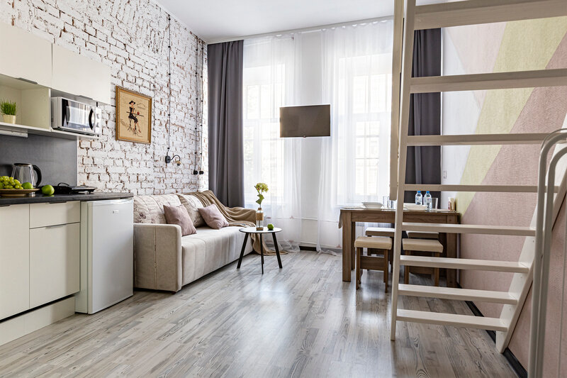 Апартаменты в целом понравились. Прекрасный вид на канал, классно просто сидеть и смотреть в окно. В апартаментах очень чисто, убирают до скрипа. Матрас комфортный. Мб низковато на уровне с кроватью, если вы высокого роста. Много полезных мелочей: сушилка для обуви, ролик для чистки одежды, ватные диски и палочки, набор для стирки, обогреватель, вентилятор, батарейки, фен. Убирают и меняют белье раз в три дня. Дизайн апартаментов классный, видно, что думали и вкладывались. Из минусов: в моем номере не работал чайник и его смогли заменить только на следующий день, потому что больше ни один из запасных чайников не работал. Посоветовали держать кнопку нажатой, пока чайник закипает)) Не включалась сушилка в ванной, расшатано крепление на спинке у дивана внизу и сильно скрипит, когда сидишь, не работает пульт от телевизора. Из того, что пишут в отзывах ниже: полотенца уже не старые, их заменили на новые, пушистые; слышимость реально высокая: слышно не только, как набирают код на замках, но и как разговаривают соседи. Два дня слушала семейные ссоры (ребят, удачи вам, надеюсь, вы не разведетесь), потом еще один вечер слушала рождественскую дискотеку до часа ночи где-то сверху. Но все равно общее впечатление хорошее и апартаменты рекомендую.