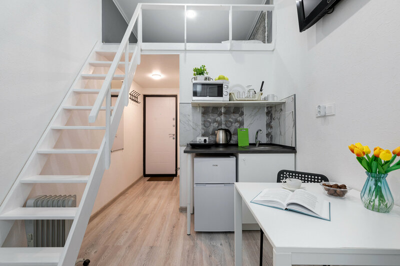 Студия не понравилась. Спать под потолком- некомфортно, душно. Очень плохо проветривается. Ремонт свежий, но всё портит уборка, которой нет. Грязно, обнаружили летом зимнюю перчатку, покрытую слоем паутины, под креслом. Паутина и на стенах. В ванной ремонта не было давно, очень грязная душевая, вытяжная вентиляция забита пылью, потому не справляется с влажностью. Приходилось настежь открывать дверь, но и это не спасало. Запах сырости и канализации. Wi-Fi в студии настолько слабый, что проще было отключить и пользоваться мобильным интернетом. В описании нигде не указано, что студия расположена на первом этаже. Район не такой уж и тихий, машины ездят всю ночь, На нас упал карниз вместе с тяжеленной шторой. Выслушала от хозяйки Ольги кучу обвинений в том, что гости всегда сами виноваты и что за три года так никто из гостей себя не вел. Но, почитав отзывы повнимательней, я увидела, что такой случай уже был. Зачем врать? А для того, чтобы не вернуть залог. Хозяйка Ольга умеет профессионально хамить. Залог не вернула, прибавив к карнизу ещё и полотенцесушитель, изначально плохо закрепленный, не поломанный! Шлет голосовые с театрально поставленными возмущениями. На звонки не отвечает. Что-либо выяснить у вас нет возможности.