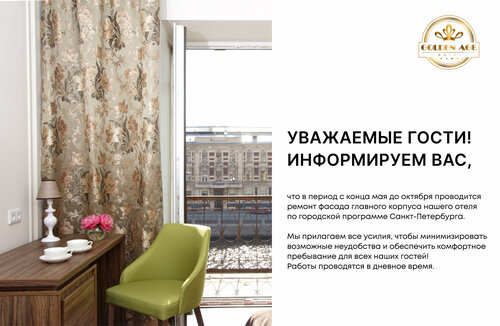 Посещали отель Золотой Век с 3-6 января 2026г.Бронировали номер супериор с балконом и видом на Фонтанку.Номер просторный,чайная станция,сейф ,в ванной комнате все ежедневно пополнялось,есть полотенцесушитель,даже освежитель воздуха👌Заселения не ждали ,прибыли ко времени,нас одидала бутылка шампансого ,что было очень приятным сюрпризом от отеля!Попросили дополнительно подушки и одеяла ,через 10минут все принесли 👍В номере тепло,спать комфортно,все удобное и подушки и матрац и одеяла.Мы очень довольны пребыванием,в номере реально отдыхали после прогулок по зимнему Петербургу.На рецепшен очень ведливый молодой человек ,отвечал на любые вопросы!Сам рецепшен небольшой,стилизованный,:диванчик куллер санузел все есть,в праздничнве дни стояла наряженая елочка.Когда будем пребывать в Санкт Петербурге остановимся в данном отеле.Все понравилось!Спасибо за уютную домашнюю атмосферу!