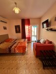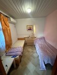 Не знаю за какие заслуги у отеля 2 звезды и завышенные цены на номера (двухместный-3500р). Отель старенький, потрепанный, сантехника и мебель старая и дешевая. Душевая течет, приходилось постоянно мыть полы. Освещение очень тусклое. В нашем номере новые кровати с матрасами (в некоторых старые), но кровати односпальные, при сдвигании всё равно проваливаешься в середине. Интернет нормальный, есть телевизор с множеством каналов, холодильник, чайник, микроволновка на ресепшене. Балкон большой, на котором стоит кровать (с торчащим гвоздем, о который порезалась 2 раза) и стол со стульями. Номер рядом огорожен полупрозрачной перегородкой, слышимость очень сильная, будто у нас в номере разговаривают. Также постоянный шум от проходящих людей на море (до поздней ночи) и стройки рядом. Ночью спать с открытым окном невозможно, сильно воняет от очистных сооружений.