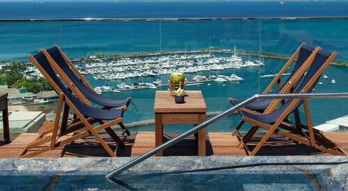 В гостинице есть ресторан, бар, тренажёрный зал, сауна, конференц-зал. И вы наверняка захотите отдохнуть у бассейна — он тут тоже есть. Причём открытый. Море тут близко — до него всего 256 м, поэтому легко можно планировать пляжный отдых.