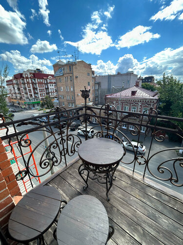 Приятный уютный отель с центре города, удобное бесконтактное заселение. Своя большая кухня со всем необходимым инвентарем. Красивая мебель и фурнитура. Видно, что создавали с душой,но сейчас как будто не хватает хозяина в доме.с улицы никто не мешал, тк окно во двор, но с кухни слышно всё. Жили в первом номере, там отошёл плинтус и держатель в ванной, пятна на стуле, шторах и на подушке, местами отходит краска. Продавленный экран над батареей и под подоконником(видимо кто-то наступил). Нет розеток у кровати, только у входной двери и у стола. В номере нет теплой батареи, полотенца не успевают высохнуть. в жару очень не удобно-принял душ утром и вечером полотенце ещё влажное. Ещё не весь свет работает в номере. В целом не хватает администратора. Спрашивали в чате, можно ли заселится раньше. Сказали надо узнавать, успеют ли убраться. Разрешили оставить вещи на ресепшене,мы приехали а там вообще никого нет. Не просто отошёл человек, а во всем отеле нет никого из персонала. Как потом оказалось уборщица приходит только к 12. Сначала она сказала, что номер ещё не убран, а потом оказалось что он все это время был пустой и накануне туда никто не заезжал. Казалось бы, что человек из чата должен был это знать сразу) понимаем, что нас не обязаны заселять раньше, но тогда и не говорили бы об этом. А то складывается полное ощущение,что персонал не владеет информацией от слова совсем. На лестнице стояли упаковки с водой, которую нам тоже не дали. Сказали на кухне есть фильтр, тоже удивительно. И как уже писали, номера располагаются на третьем этаже. К ним ведёт потрясающая лестница, но для кого то может стать проблемой подняться туда с чемоданами. По моему в описании это не указано. Для нас это проблемой не было.