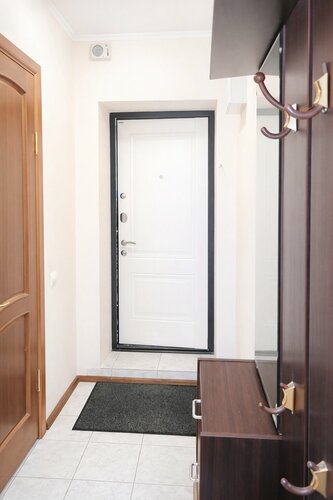 Квартира предлагает комфортное проживание: есть два выдвижных двуспальных дивана (всего 4 спальных места). На кухне — микроволновая печь, плита и всё необходимое для приготовления пищи. В ванной — сушилка для белья, фен, стиральная машинка, ванна, шампунь. Предоставляются постельное бельё, полотенца, подушки, халаты и туалетные принадлежности.