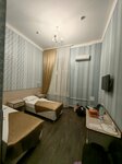 Мотель родом из 90-х. Вход с домофоном рядом с уцененкой, далее нужно искать где он находится. Если что он на втором этаже налево. Сервис странный, с одной стороны позвонили и поинтересовались когда приеду. Объяснил что рейс задерживается сказали ничего страшного наберёте в домофон. С другой стороны на другой день прямо на лету остановили и сказали в следующий раз звонить на телефон. Больше я администратора на стойке не видел. Только когда ключи сдавал. Внешний интерьер из 90-х старый дешёвый ламинат прибитый саморезами к полу, в коридоре освещение тусклое, так что берите с собой фонарь иначе в номер не попадете. В номерах окна почти в пол без штор, вечером вся улица будет смотреть чем вы занимаетесь. Хорошая только душевая красиво сделана, но плитка вся гуляет и душ брезгает во все стороны. Там же стоит нагреватель, так что вода всегда теплая. Стандартно два полотенца, стаканы, гель для душа и шампунь. Кровати маленькие и неудобные. Переночевать один раз норм, но больше не поеду.