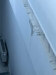 Кондиционер подтекал, капал прямо на на лестницу. Видно, что такое не первый раз, судя по следам на стене.