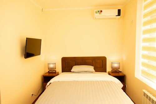 Номер заказывали по телефону на 3 суток. Прибыли в оговоренное время, заселили без проблем. Номер брали с 1 большой кроватью. Кровать жесткая, но нам было нормально. Тумбочек нет, прикроватных розеток тоже нет. Душ неудобный, на полу душевой постоянно была вода, не понятно из за чего. Ручка двери в душевую была сломана. Сделал замечание управляющему, на что получил ответ что отремонтируем как вы уедете.