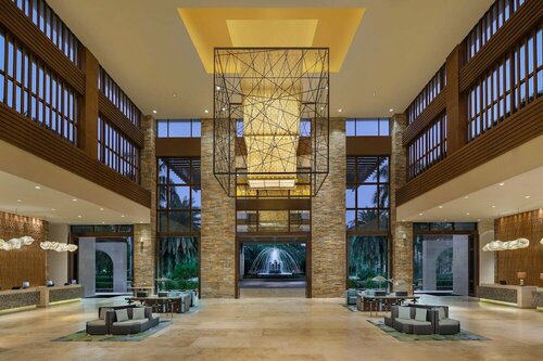 Отель понравился, 5* в районе Хайтанг Бэй. Есть выход в морю с отеля, но купаться в нем запрещено из за больших волн. Территория большая зеленая, несколько бассейнов, лежаки, полотенца бесплатно выдают. Китайцы в основном если плавают, то в бассейне. В отеле есть европейская еда, наряду с китайской. В номерах вай фай бесплатно, балкончик с мебелью, халаты, тапочки, чайник, пакетики чая, кофе, сахар. ванная туалет раздельно. Есть фен. Уборка каждый день. Депозит отель не берет. Вечером можно посидеть в лобби, выпить коктельчик и послушать выступление артистов. Кто выбирает ужин, часто ужины проводят на природе под пальмами , рядом со сценой, где играют музыканты и выступают артисты.